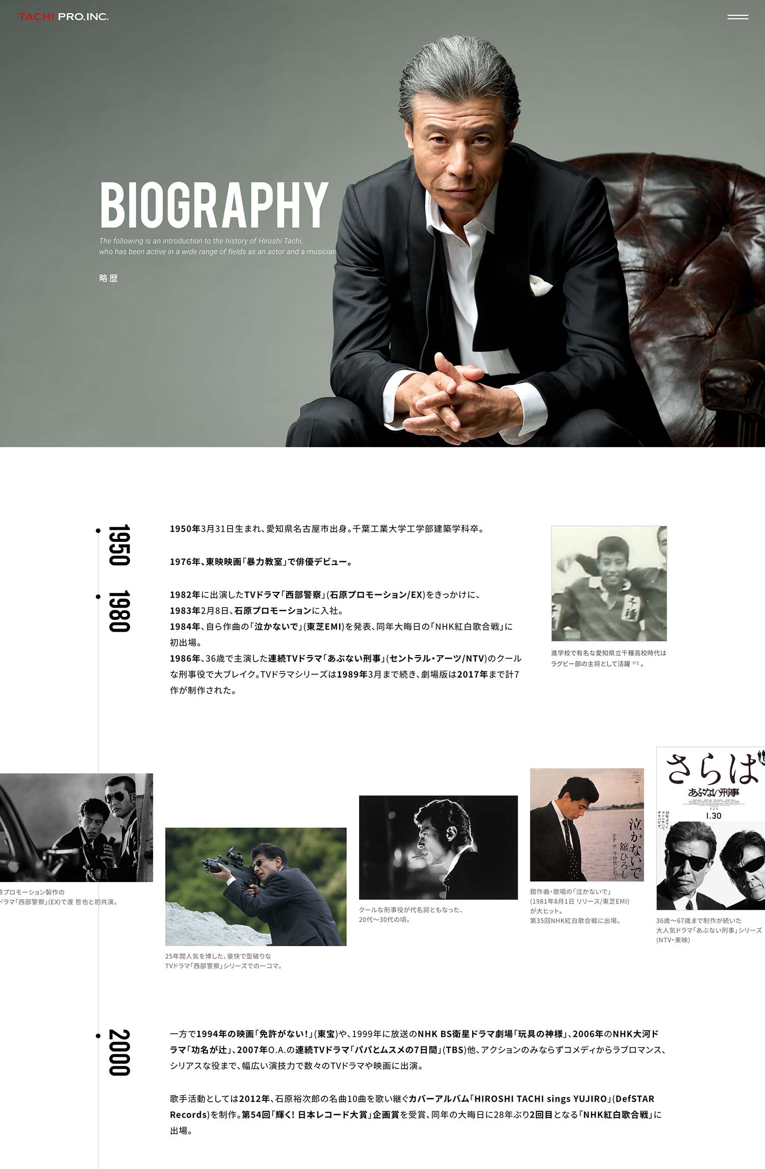 俳優・歌手として長きに渡り活躍を続けられている舘ひろしさんのオフィシャルページを制作いたしました。