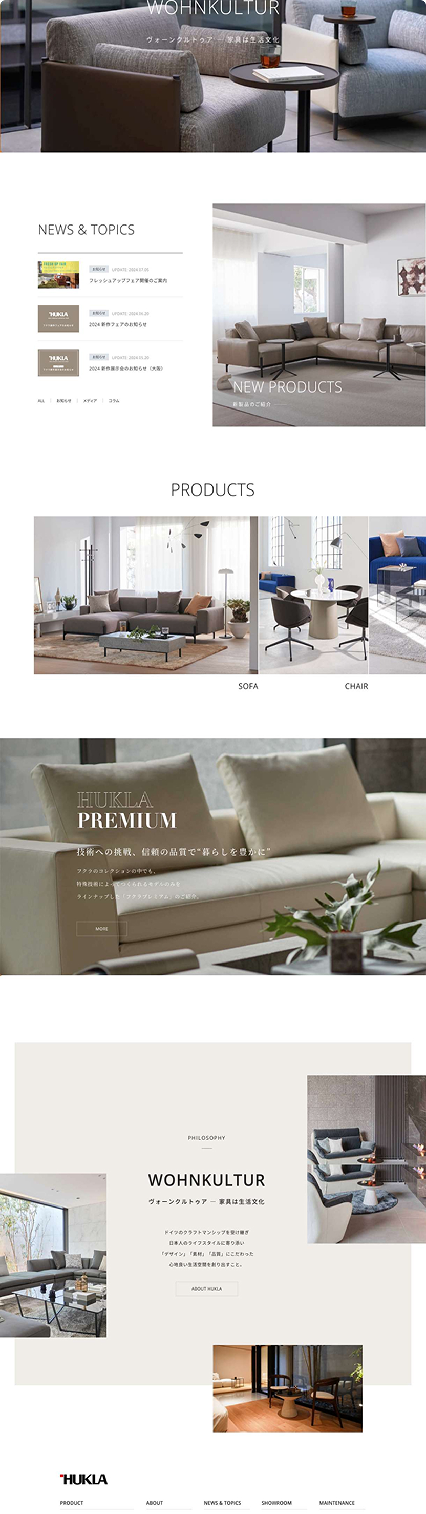 国産高級家具メーカー日本フクラ株式会社様のウェブサイトをリニューアルいたしました。
